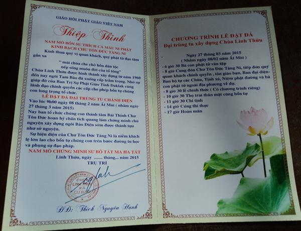 Nay nhờ hồng ân Tam bảo gia hộ, sự quan tâm thương tưởng của Chư Tôn Đức trong Giáo Hội, cũng như sự cho phép của các cơ quan chính quyền. Chùa Linh Thứu sẽ tổ chức lễ đặt đá đại trùng tu xây dựng Ngôi Tam Bảo vào ngày 27 tháng 3 năm 2015 (Nhằm ngày 08 tháng 2 năm Ất Mùi).