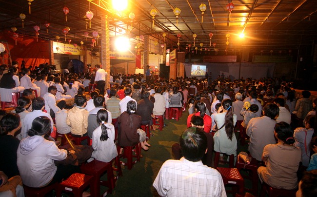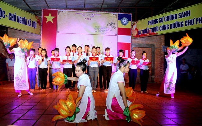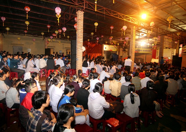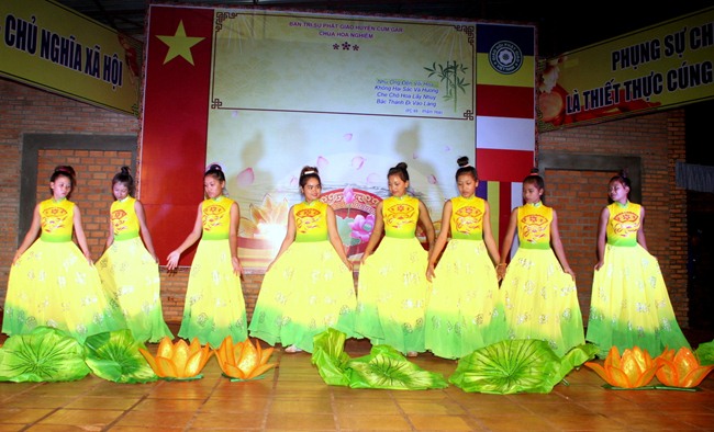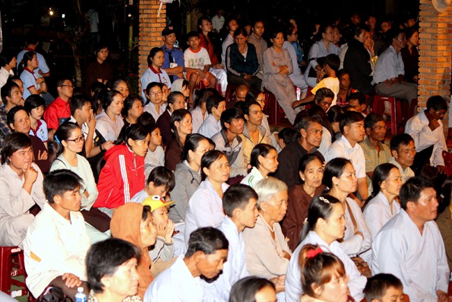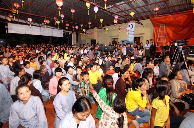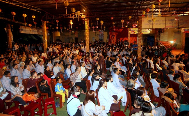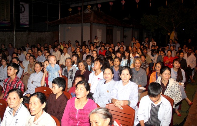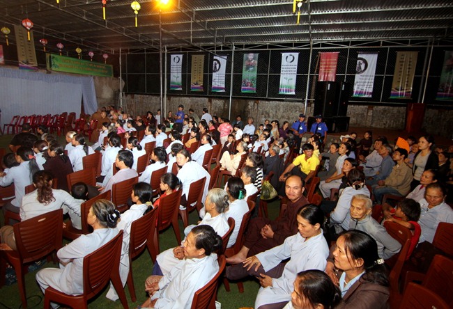 Mở đầu chương trình thuyết giảng là những tiết mục văn nghệ cây nhà lá vườn do do đội văn nghệ của chùa biểu diễn. Không khí của đêm diễn đã làm ấm lòng bao người ngồi trong Giảng đường dù mưa vẫn rơi đều ngoài sân chùa.