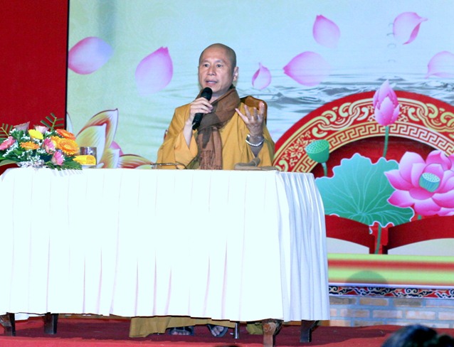 Mở đầu, nhân buổi Lễ cầu siêu tưởng niệm và tri ân các anh hùng liệt sỹ, Thượng tọa đã tản mạn về cái cõi sau khi chết, qua đó nhắc nhở các Phật tử nhớ cúng thí thực cho các vong linh ăn. Theo nhân quả, khi chúng ta giúp cho các vong linh không bị đói thì một mai mình chết tự nhiên được no đủ. Ta không có con mắt nhìn vào cõi âm để biết người chết khổ như thế nào. Phật nói: “Sinh – lão – bệnh – tử đều là khổ”, đúng vậy! Chết rồi ta sẽ thấy cái chết rất khổ, không hề sung sướng, trừ người lên cõi Trời. Hiểu điều này, chúng ta phải lo tu, làm rất nhiều điều phước tức là ta đang xây cái nhà trong cõi chết để chuẩn bị còn có nơi mà mình sẽ đi tới, tránh lâm vào tình trạng lang thang, đói khổ.