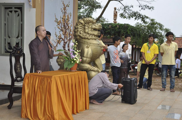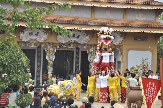Thầy trụ trì chùa đã ban đạo từ trước khi đoàn lân múa biểu diễn cho các em. Trung thu này thầy đã liên hệ  tới hai đội lân lớn về phục vụ . Một đội của Phật tử chùa Sắc tứ Khải đoan.Một đội của huyện. Hai đội biểu diễn chuyên nghiệp, hấp dẫn, nghệ thuật và ….miễn phí “ chăm phần chăm” lại còn hứa sang năm vào biểu diễn nữa