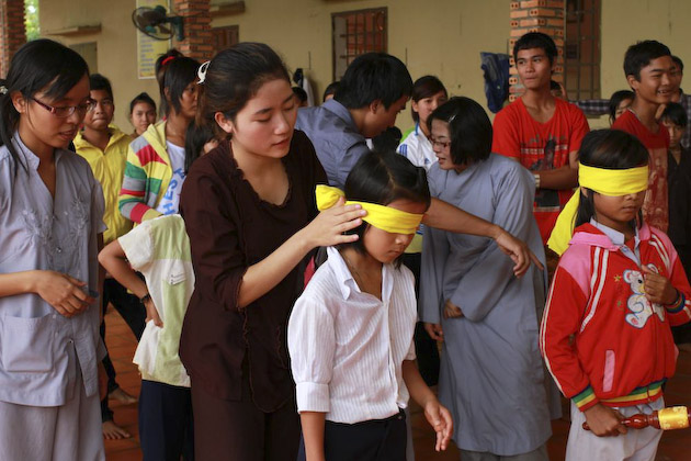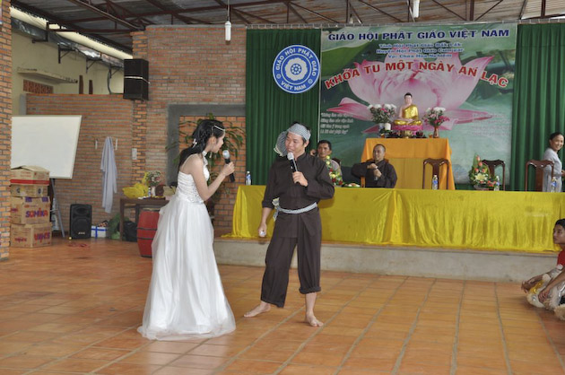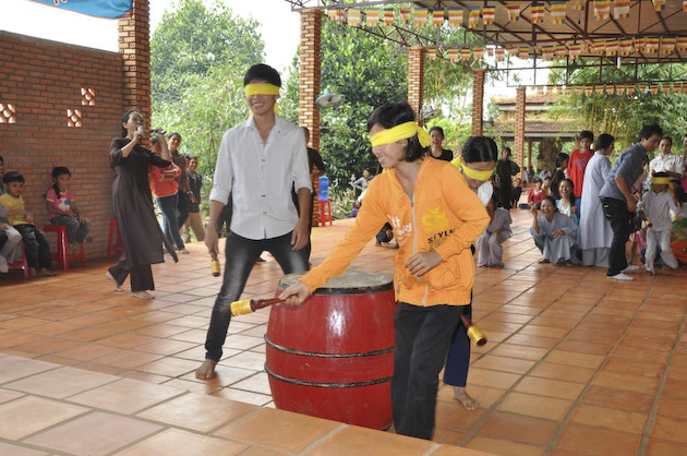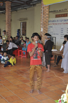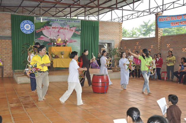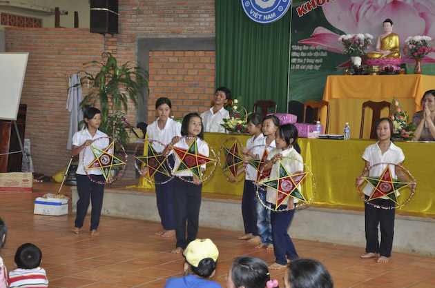 Sau phần múa lân là chương trình văn nghệ Trung thu  do các anh chị huynh trưởng tự biên, tự diễn trên tinh thần “ cây nhà lá .. chùa”. Các buôn cũng tham gia mỗi buôn một đến hai tiết mục. Hào hứng nhất là cuộc thi  giáo lý Phật pháp  được thông qua các trò chơi  làm cho  ngày vui Trung thu thêm sinh động.  Nội dung cuộc thi giáo lý vẫn xoay quanh việc hiểu và thực hành Ngũ Giới trong đời sống hằng ngày. Tiếng cười, tiếng hát, tiếng vỗ tay hòa lẫn nhau trong niềm vui của mọi người