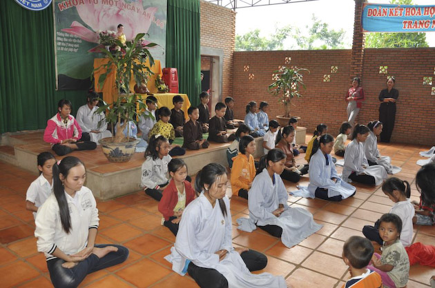 Bà con về chùa sáng nay đông quá!  đặc biệt là các em nhỏ. Trong vui chơi có tu học, vẫn duy trì các khóa lễ nhưng thời gian hạn chế tập trung vào buổi sáng để dành nhiều thời gian hơn cho các em vui chơi. Buổi trưa không ngũ..vui quá! Không ai ngũ được.