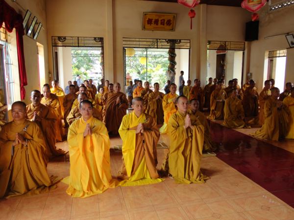 Tại buổi lễ Thượng tọa Thích Châu Quang đã tán thán tinh thần tu học của chư tôn đức Tăng ni sau ba tháng An cư tu tập, trau dồi giới đức, thúc liễm thân tâm.