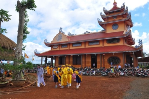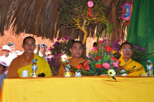 Đến chứng minh và chủ trì buổi lễ có sự hiện diện của: ĐĐ. Thích Quảng Hiền – Phó BTS PG tỉnh Đắk Nông; ĐĐ. Thích Chiếu Ý – Trưởng BHP trụ trì Chùa Hoa Khai, chư tôn đức Tăng, Ni cùng các cấp lãnh đạo chính quyền địa phương và đông đảo quý nam nữ Phật tử tham dự.