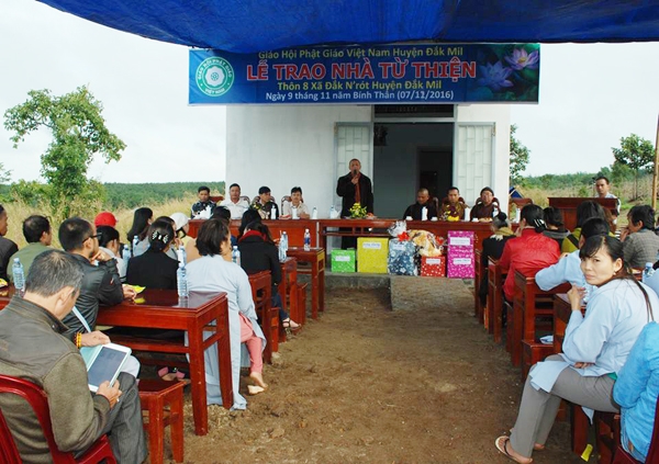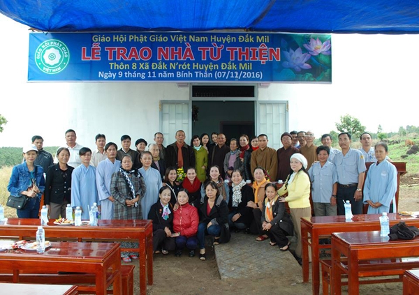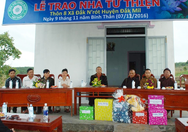 Về phía Chính quyền có: ông Nguyễn Ngọc Hậu, Chủ tịch UBND xã Đăk ND Rót, đại diện chính quyền địa phương và quý Phật tử thành viên trong Hội Từ thiện cơm chay Hướng Thiện chùa Hoa Nghiêm, và Ban Hộ trì Tam Bảo và đạo tràng Phật tử chùa Khánh Phước đồng tham dự.