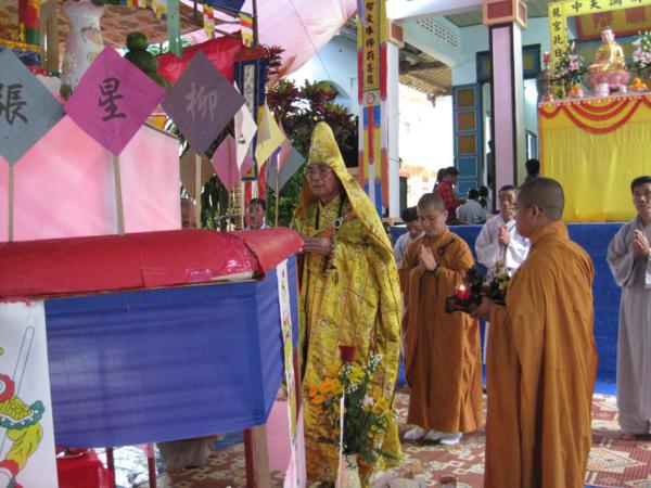 Chứng minh Trai đàn có Hòa Thượng thượng Quang hạ Đạo – Phó ban trị sư Phật giáo tỉnh Đồng Nai. Đương vi Sám chủ trai đàn là Thượng tọa Thích Chánh Huệ, cùng chư Tôn đức Hộ đàn trong Ban kinh sư nghi lễ – Huế.