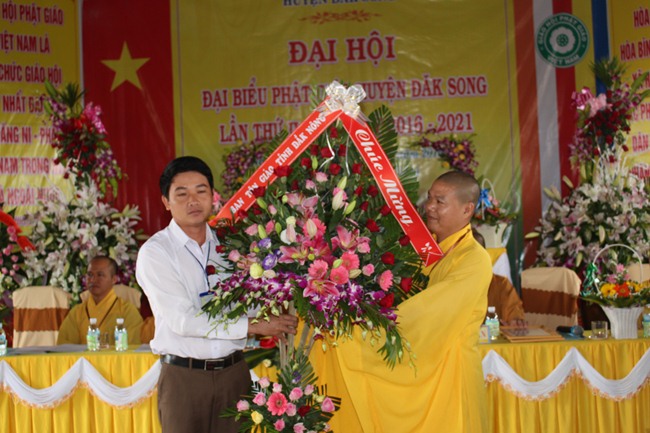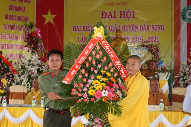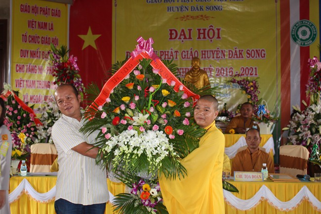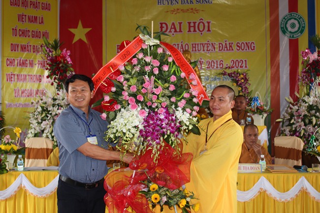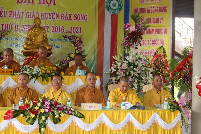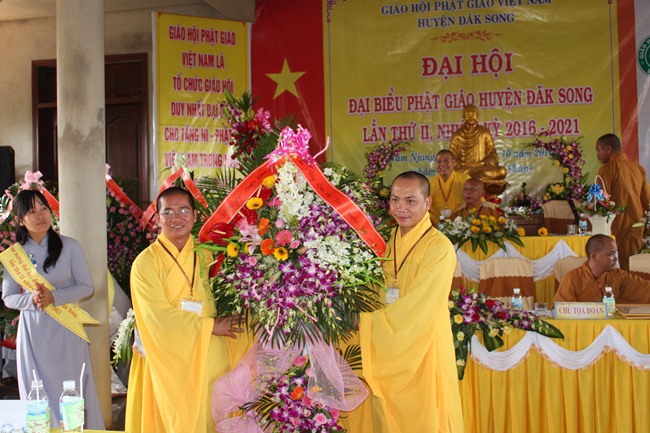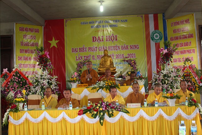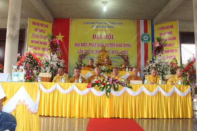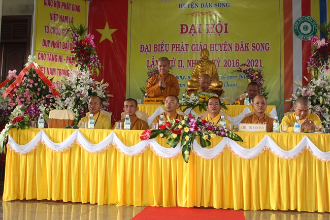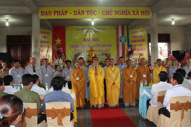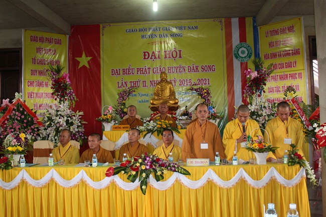 Đồng thời suy cử tân BTS-GHPGVN huyện (gồm 9 thành viên Thường trực và 14 thành viên ủy viên) ra mắt. Đại đức Thích Quảng Định trưởng Ban trị sự GHPGVN huyện Đăk song cùng các thành viên Ban trị sự đã nhận nhiệm vụ mới và phát nguyện lời hứa hẹn trước Đại hội.