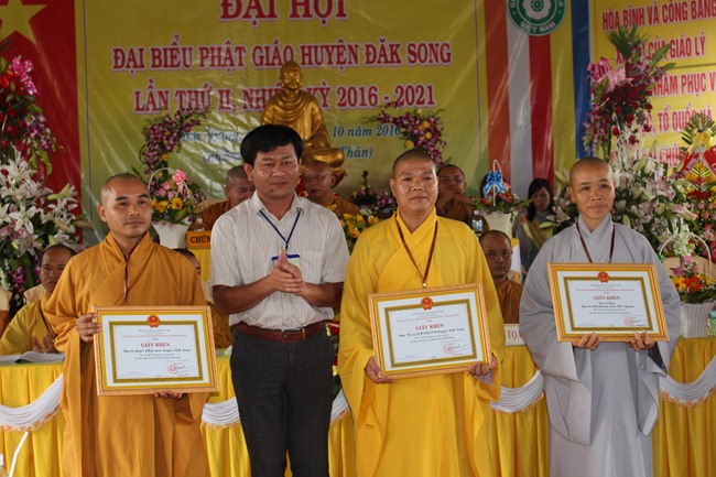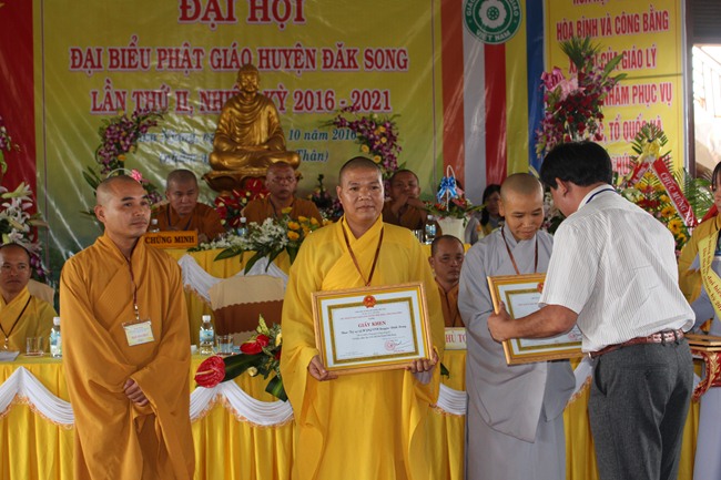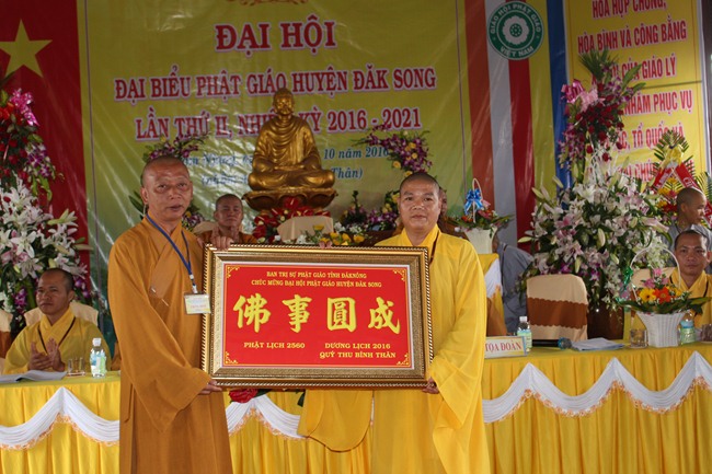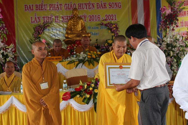 Thông qua sự kiện Đại hội Phật giáo huyện lần này, BTS-GHPGVN huyện Đăk song đã được Chư tôn Giáo phẩm BTS Phật giáo tỉnh cũng như lãnh đạo các cấp chính quyền đại biểu về tham dự đại hội đã ghi nhận và biểu dương về những thành tích đóng góp không nhỏ của Phật giáo huyện Đăk song trong nhiệm kỳ vừa qua (2012-2016).