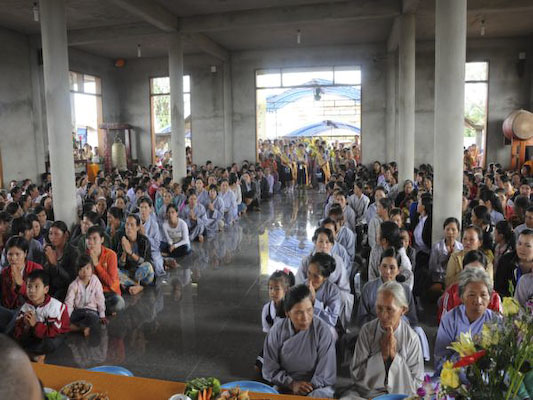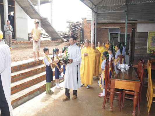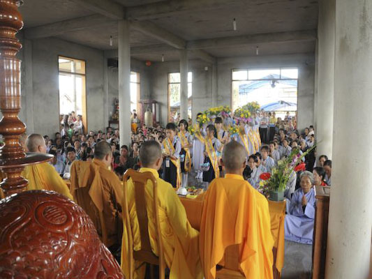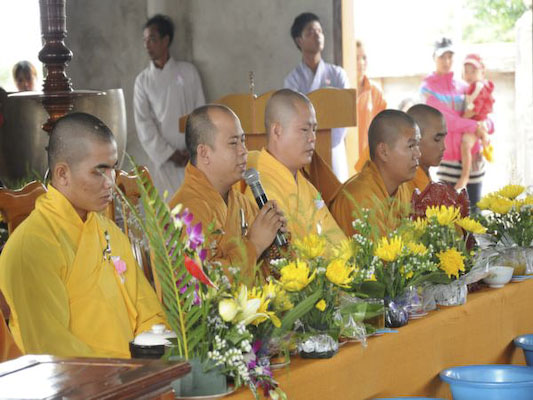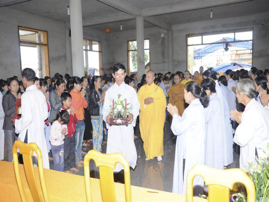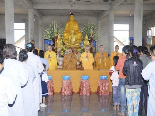 Chứng minh buổi lễ có ĐĐ: Thích Quảng Định, phó Thư ký Ban Trị sự tỉnh hội Phật giáo tỉnh Đăk Nông, trụ trì chùa Hoa Quang, cùng chư tôn đức Tăng và đông đảo bà con Phật tử các giới.