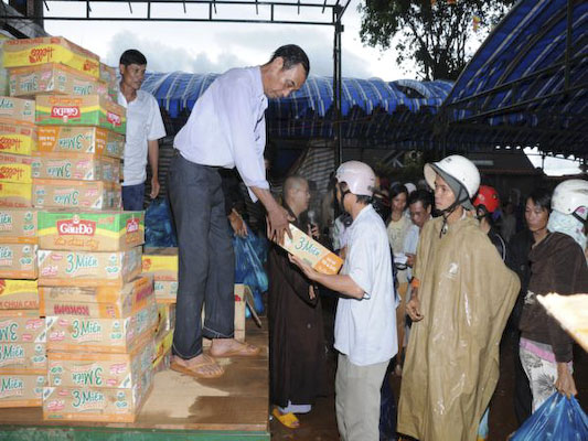 Mặc dù Chùa Hoa Quang đang trong giai đoạn xậy dựng lại ngôi chánh điện, kinh phí xậy dựng đang thiếu hụt, nhưng thầy trụ trì cùng Ban hộ tự đã phát 130 phần quà trong mùa Báo Hiếu năm nay, mỗi phần quà trị giá hơn 300 ngàn đồng