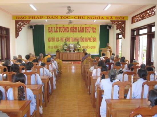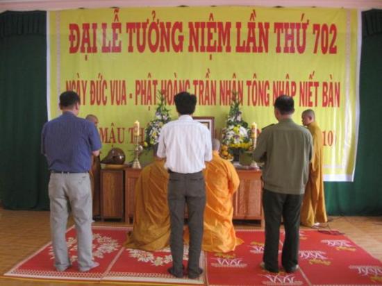 Trang chủ Tin tức Đăk Nông : Kỷ niệm 702 năm Phật Hoàng Trần Nhân Tông... Tin tức Đăk Nông : Kỷ niệm 702 năm Phật Hoàng Trần Nhân Tông nhập Niết Bàn Bởi thanhnienphattu - 8 Tháng Mười Hai, 2010 Facebook Twitter Google+ Pinterest WhatsApp Email Print Viber Đến chứng minh và tham dự lễ có: Đại đức Thích Quảng Tuấn UVHĐTS, Trưởng BTS Phật giáo tỉnh, cùng chư Tôn đức trong Thường trực BTS. Đại diện UBMTTQVN tỉnh, Ban Tôn giáo tỉnh, Công an tỉnh, và đông đảo bà con Phật tử cùng đến tham dự lễ kỷ niệm.