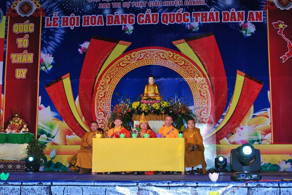 Quang lâm chứng minh và tham dự lễ có: HT.Thích Quảng Xả, UV Thường trực HĐTS GHPGVN, Trưởng BTS GHPGVN tỉnh Kon Tum; HT.Thích Minh Thiện, UV HĐTS GHPGVN, Trưởng BTS GHPGVN tỉnh Long An; TT.Thích Quảng Tuấn, UV HĐTS GHPGVN, Trưởng BTS GHPGVN tỉnh, Trưởng Ban tổ chức lễ hội; ĐĐ.Thích Quảng Hiền, UV HĐTS GHPGVN, Phó trưởng Ban thường trực BTS GHPGVN tỉnh; ĐĐ.Thích Nhuận Thân, Phó BTS GHPGVN tỉnh, Trưởng BTS GHPGVN huyện Đăk Mil, Phó Ban tổ chức; cùng chư Tôn đức và đông đảo bà con Phật tử trong tỉnh.
