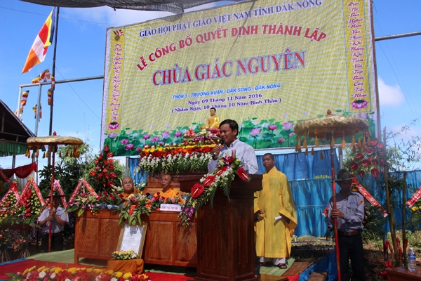Về phía Chính quyền tham dự lễ có: Lê Văn Tưởng – Đại diện ban tôn giáo tỉnh; Ông: Lê Ngọc Yêm – Phó trưởng phòng PA88 Công an tỉnh Đăk Nông; Ông Phan Văn Hợp – Tỉnh Ủy viên, Bí thư Huyện Ủy Huyện Đăk Song; ông Nguyễn Ngọc Sơn – Huyện Ủy viên, Chủ tịch UBMTTQ huyện Đăk Song; bà Nguyễn Thị Duy Trâm – Phó Chánh Văn phòng huyện Ủy huyện Đăk Song; ông Nguyễn Hữu Phương – Phó trưởng Phòng Nội vụ huyện Đăk Song; Bà Nguyễn Thị Thủy – Phó Bí thư Đảng Ủy xã Trường Xuân; ông Phạm Quốc Thụy – Chủ tịch UBND xã Trường Xuân; cùng đại diện Chính quyền các cấp huyện Đăk Song, xã Trường Xuân; cùng đông đảo bà con Phật tử xa gần cũng về dự.