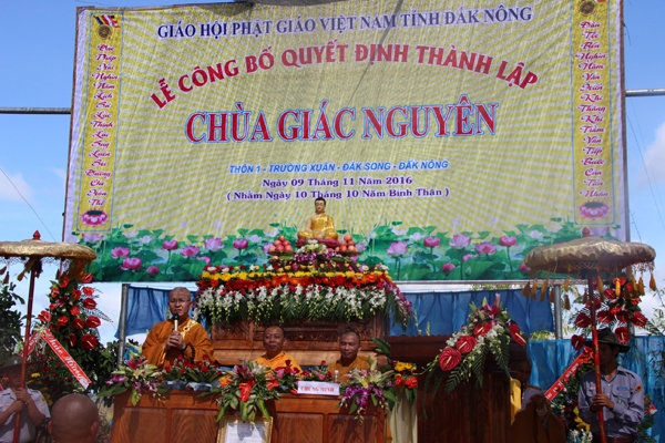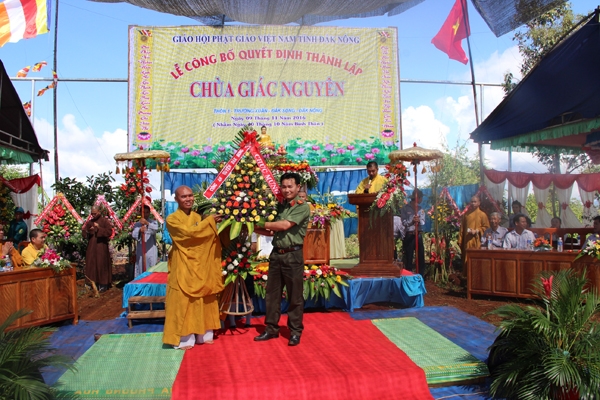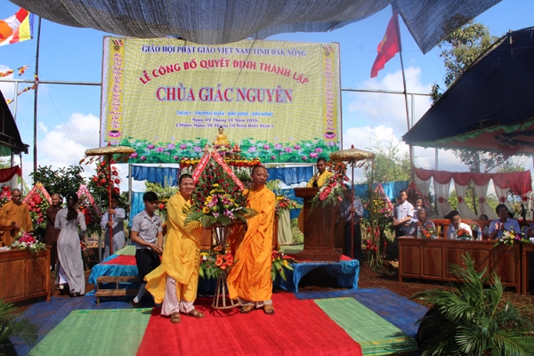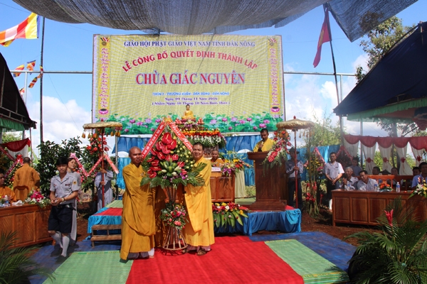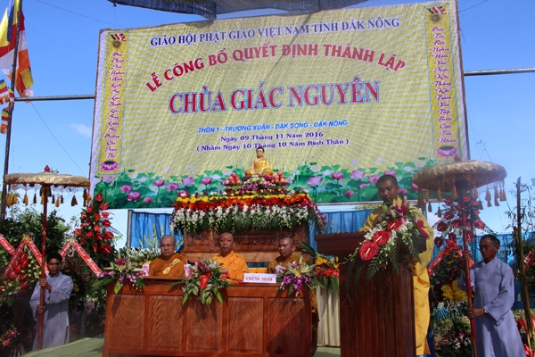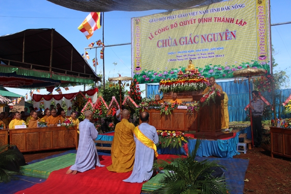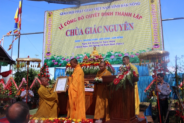 Tại buổi lễ, ĐĐ.Thích Quảng Nhã thay mặt Thường trực BTS GHPGVN tỉnh tuyên đọc Quyết định thành lập chùa Giác Nguyên. TT.Thích Quảng Tuấn đã trao quyết định thành lập và con dấu chùa Giác Nguyên đến ĐĐ.Thích Giác Luật và đạo tràng Phật tử bổn tự.
