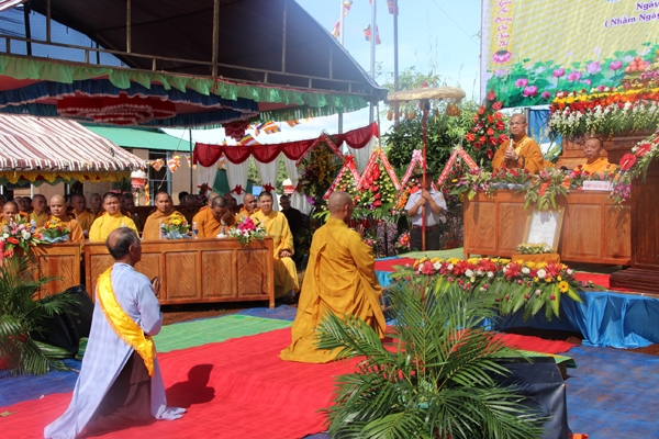 Trong không khí trang nghiêm của buổi lễ, ĐĐ.Thích Quảng Hiền đã thay mặt Thường trực BTS Phật giáo tỉnh có lời đạo từ đến đồng bào Phật tử đị phương, Đại đức đã khuyến tấn một tu tinh tấn tu hành trong sự đoàn kết và hòa hợp.
