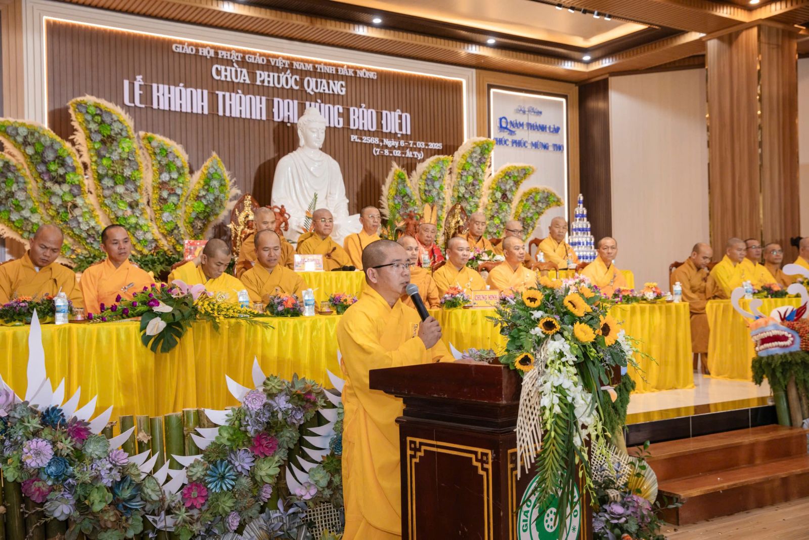 Sáng ngày 7/3/2025 (nhằm ngày 8/2/Ất Tỵ), chùa Phước Quang (X. Nhân Cơ, H. Đắk R’Lấp, T. Đắk Nông) trang nghiêm long trọng tổ chức lễ khánh thành đại hùng bảo điện sau 5 năm xây dựng và kỷ niệm 10 năm thành lập.