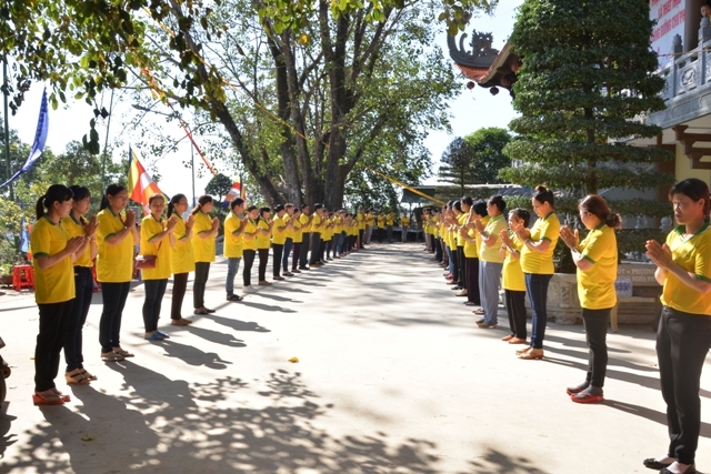 Thiện tín Phật tử trong CLB Phật tử chắp tay thành kính cung đón quý Ngài