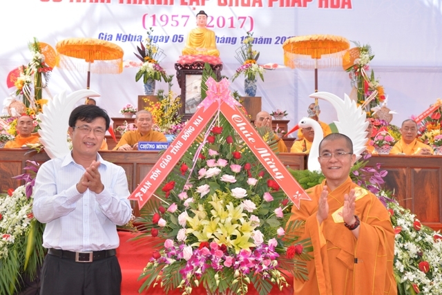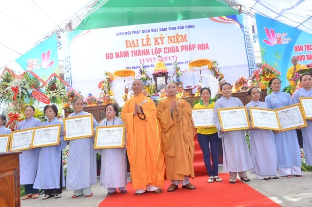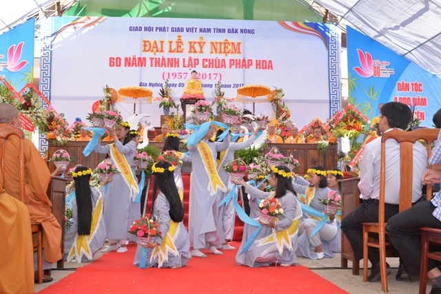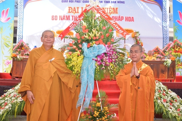 Hòa thượng Thích Thiện Nhơn, đạo từ nhân buổi lễ. Hòa thượng đã ôn lại quá trình hình thành Phát triển của Phật giáo từ thuở chấn hưng, trong đó có Phật giáo trung phần và Phật giáo Tây nguyên. Hòa thượng nhấn mạnh đến sự kế thừa phát triển của Phật giáo tại tỉnh nhà mà trước đây là tỉnh Quảng Đức, đồng thời tán dương sự Phát tâm của chư Thường tọa Đại đức trong buổi đầu hình thành tỉnh mới Đắk Nông. Sự nhiệt huyết và tinh thần phụng sự của Chư Đại đức Tăng Ni trong gần 15 năm qua đã tạo bước phát triển đầy triển vọng của một Ban trị sự Phật giáo so với các tỉnh thành lân cận. Sự phát triển của ngôi Chùa Pháp Hoa cùng là một nhân tố quan trọng trong sự phát triển chung của tỉnh nhà.