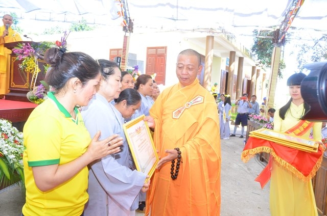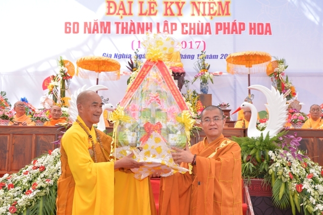 Sau phần đạo từ, Hòa thượng cùng Chư tôn Hòa thượng Đại đức Tăng Ni và các cấp chính quyền đã tặng hoa và các tặng phẩm chúc mừng nhân sự kiện trọng đại này.