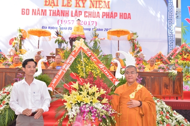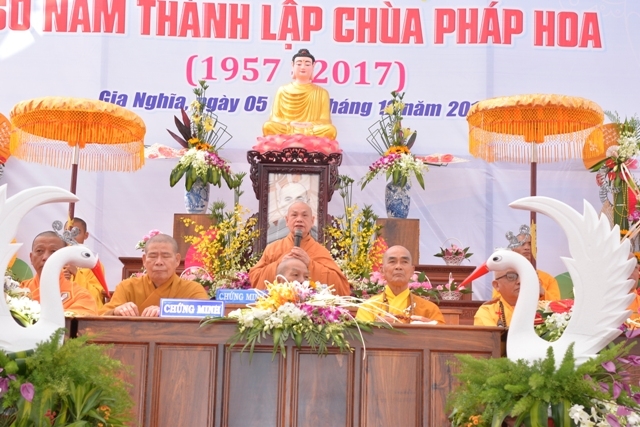 Đại đức trụ trì thay mặt Bổn tự Pháp Hoa, dâng lời thành kính đảnh lễ Chư Tôn Giáo Phẩm Lãnh đạo các cấp Giáo hội,Chư Tôn Hòa Thượng,Thượng Tọa,Đại Đức Tăng Ni cùng quý vị Lãnh đạo Đảng, Chính quyền, Mặt trận Tổ quốc ,Ban Tôn Giáo, chư vị khách quý và Thiện nam Tín nữ Phật tử gần xa lời chào mừng trân trọng và sự biết ơn sâu sắc. Sự hiện diện của Chư Tôn Đức và quý vị trong buổi lễ hôm nay đã nói lên lòng ưu ái, sự quan tâm nhiệt tình đối với công cuộc hoằng pháp của Phật giáo Việt Nam nói chung và đời sống tinh thần của đồng bào cũng như Phật tử tại địa phương nói riêng.