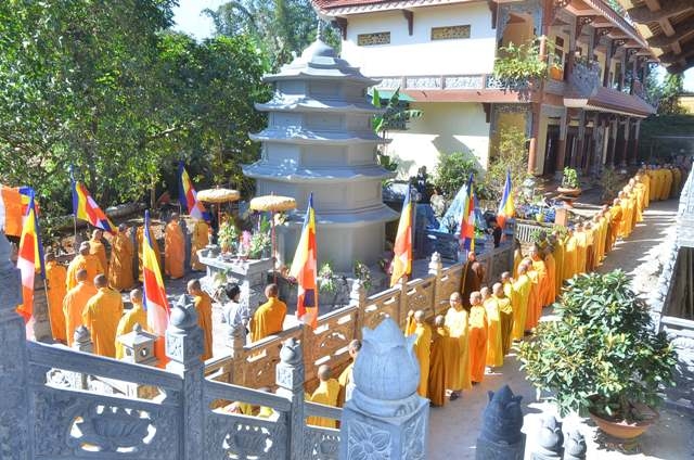 Chư tôn Đức dâng hương tưởng niệm và hữu nhiễu quanh bảo tháp Cố Hòa thượng đệ nhất trú trì chùa Pháp Hoa, hiệu thượng Trí hạ Huy.