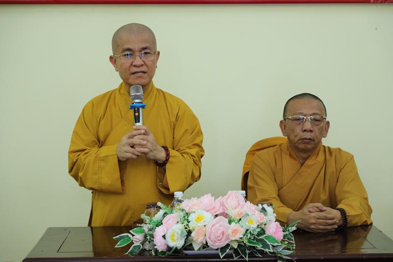 TT.Thích Quảng Tuấn, Ủy viên Thường trực Hội đồng Trị sự, Phó Trưởng ban Hướng dẫn Phật tử T.Ư phát biểu tại buổi lễ trao quà
