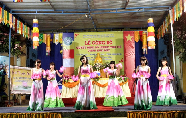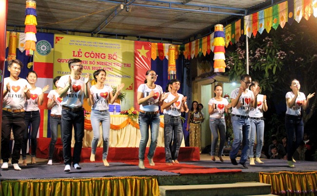 Để mở đầu buổi thuyết Pháp, các Phật tử đạo tràng Phật Đắc và Gia đình Phật tử chùa Huệ Đức đã biểu diễn cúng dường một số tiết mục văn nghệ trongbầu không khí thân mật ấm cúng.