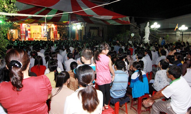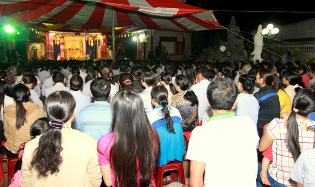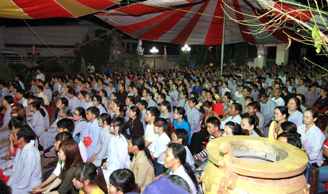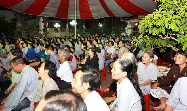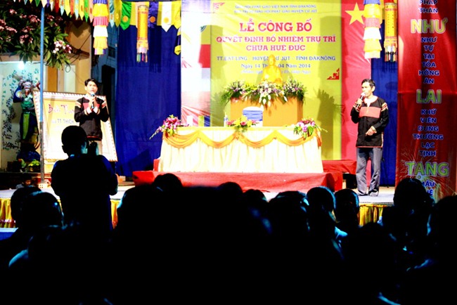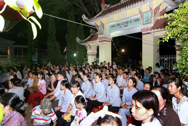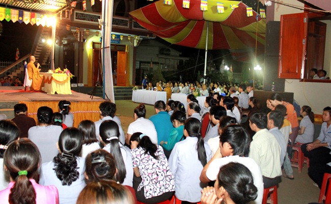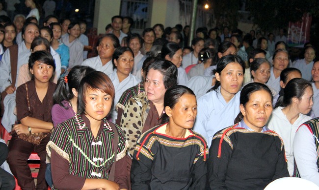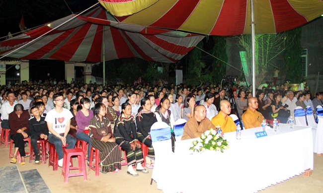 Đúng 19h00”, buổi thuyết Pháp chính thức bắt đầudưới sự tham dự của Chư Tăng Bổn tự và trên 1000 Phật tử đến từ TP Hồ Chí Minh, Đăk Lắk, Đăk Nông, cùng Phật tử địa phương.