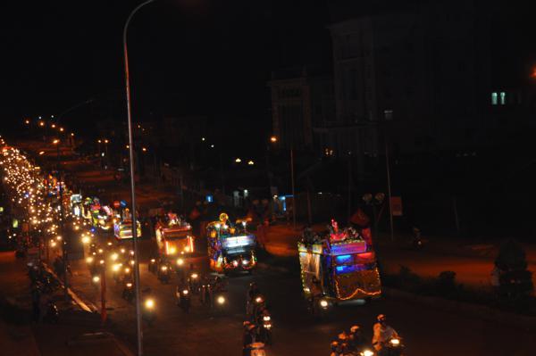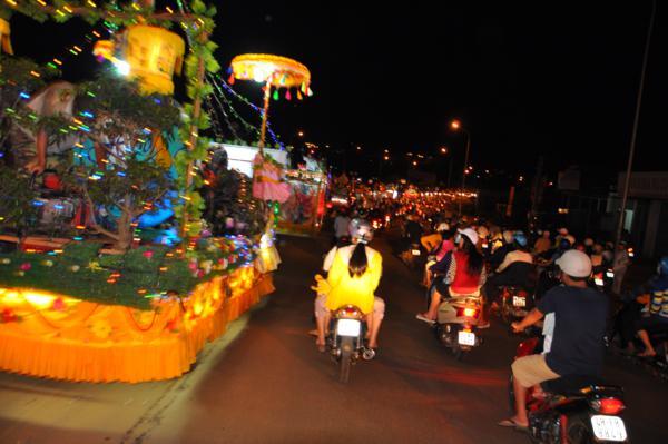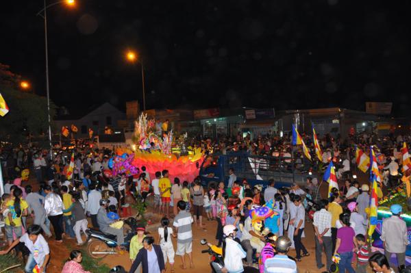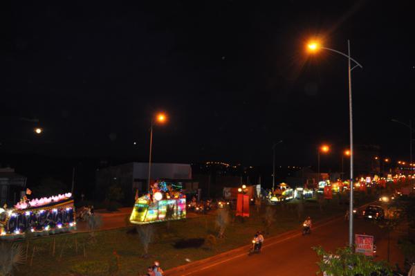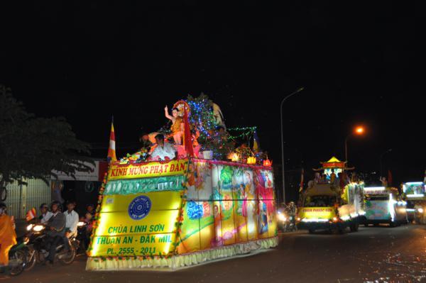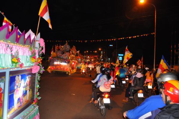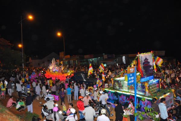 25 chiếc xe hoa cùng hàng ngàn Phật tử tham gia diễu hành, tạo nên một không khí tưng bừng trên phố núi, người dân địa phương vô cùng phấn khởi trong ngày Phật đản năm nay.