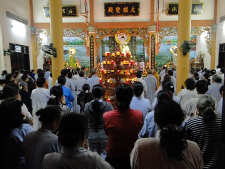 Tại Tịnh Xá Ngọc Ban P.Tân Hòa dưới sự chủ sám của Sư Cô TN. Thảo Liên cùng chư Ni bổn tự đã tuyên sớ cầu an cho hơn 800 Phật tử khắp nơi trong thành phố về tham dự.