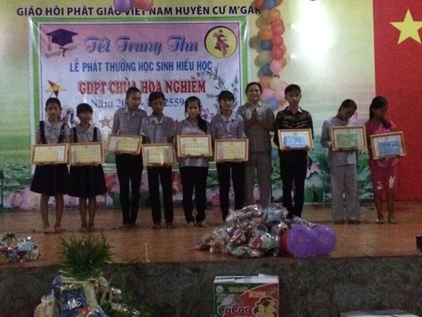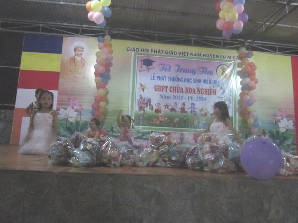 Nằm trong chương trình đón Tết Trung Thu năm 2015, với tâm nguyện: Đem tết Trung thu đến với Phật tử nhỏ tuổi vùng sâu vùng xa trên địa bàn, ĐĐ. Thích Minh Đăng – trụ trì chùa Hoa Nghiêm (02 Lê Lai – TT. Quảng Phú – CưM’gar – ĐắkLắk) cùng Ban Từ thiện của Bổn tự đã tổ chức Trung thu và tặng quà cho các em tiếu nhi nhiều đơn vị.