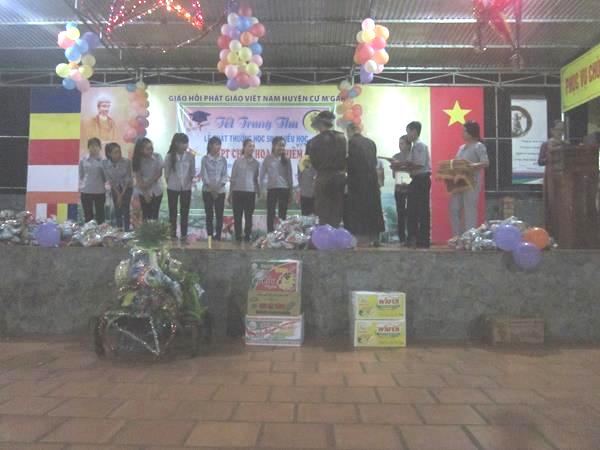 Ngày 14/8/Ất Mùi, 800 phần phần quà Trung thu được phát cho Phật tử Đạo Tràng Hưng Phước (xã EaKiết), đạo tràng Hưng Pháp (xã EaH’Đing), chiều tối cùng ngày, đoàn cùng đã đến Bệnh viện Đa Khoa huyện để trao tận tay 80 phần quà cho các cháu đang điều trị tại Khoa nhi, 100 phần quà cũng đã đến với các em Phật tử Đạo tràng Linh Phước (xã CưSuê).