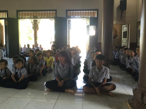 Buổi sáng, sau phần khai mạc, là chương trình nghi lễ – toàn thể Pháp hội, dưới sự hướng dẫn của Đại Đức trụ trì đã trì tụng kinh Bát Chánh Đạo, sau đó là phần Pháp thoại. Chủ đề xoay quanh chữ Tu. Tu là để sửa mình, là để đi cho đúng chánh đạo. Tu là để chuyển nghiệp, để sạch nghiệp và đem đến giải thoát, an vui trong hiện tại và cả vị lai. Bài Pháp nhủ ngắn gọn nhưng thiết thực và sâu sắc đã làm đầy thêm hành trang cho Phật tử về tu hôm nay trên con đường tu tập của mình.