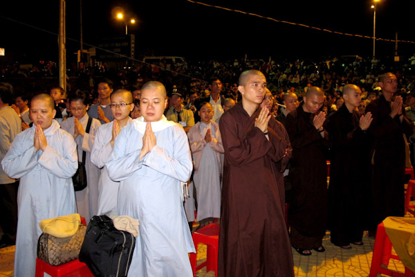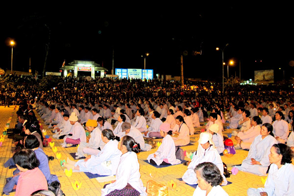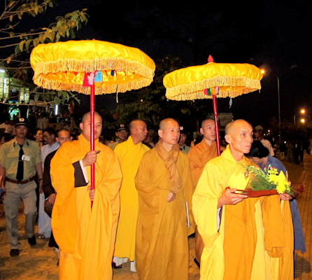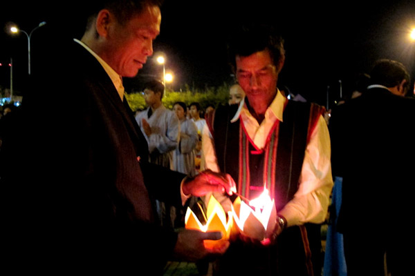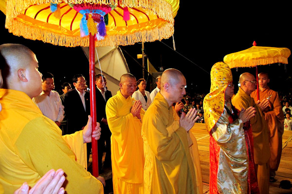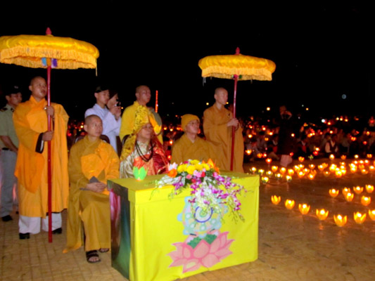 Đến đây, Chư tôn Giáo phẩm cùng các cấp Lãnh đạo chính quyền quan lâm Lễ đài thực hiện nghi thức cầu Quốc thái dân an và thắp nến cầu nguyện. Khúc tán ca TÔN KÍNH PHẬT cử lên trầm hùng phủ khắp cả quảng trường Lễ hội, đã đem đến đỉnh điểm của cảm xúc thiêng liêng về niềm tôn kính Phật. Sau đó, lễ niêm hương bạch Phật – đảnh lễ Tam Bảo đã diễn ra thật trang trọng.