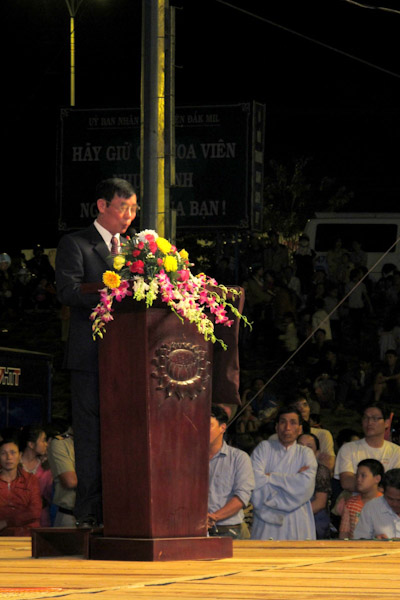 Trong buổi lễ, ông Lương Xuân Liêu – Đại diện Lãnh đạo chính quyền Huyện Đăkmil cũng có đôi lời phát biểu chào mừng. Qua đó, ông bày tỏ “Chúng ta mong và tin tưởng Lễ hội Hoa đăng Quốc thái dân an năm nay là cơ hội tốt để chúng ta tăng cường sự hiểu biết lẫn nhau, sống chân thành và nhân hậu, chung tay chung sức xây dựng nông thôn mới, xây dựng địa phương phồn thịnh, hạnh phúc”.