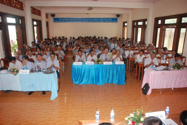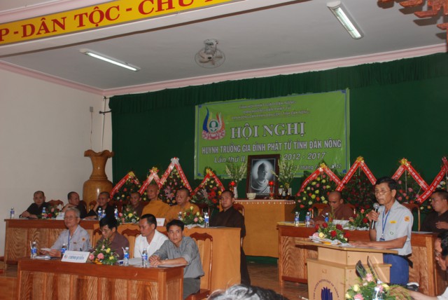 Trong không khí long trọng của Hội nghị Anh Huynh trưởng cấp Tấn Thị Vân-Lê Văn Tuyển Ủy viên ban Trị sự, Phó ban Hướng dẫn Phật tử, Trưởng Ban Hướng dẫn Phân ban GĐPT tỉnh, phó ban tổ chức đọc diễn văn khai mạc hội nghị.Hội nghị trang nghiêm đón nhận đạo từ của Thượng tọa Trưởng ban Trị sự, lắng nghe huấn từ của anh Phó Ban Hướng dẫn Phân ban GĐPT trung ương.Bằng tất cả tâm huyết Huynh trưởng đại biểu đã thể hiện tinh thần, trách nhiệm cao nhất để cùng nhau hoàn thành chương trình hội nghị. Hội nghị đã nhất quán thông qua báo cáo tổng kết hoạt động Phật sự nhiệm kỳ 2009-2012 và phương hướng hoạt động Phật sự nhiệm kỳ 2012-2017.