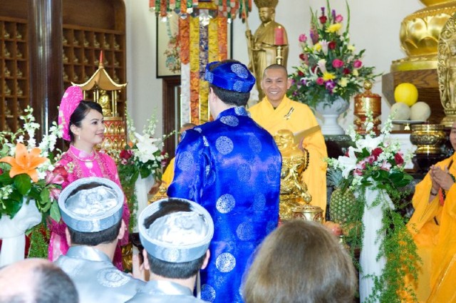 Được hướng dẫn cụ thể, cô dâu và chú rễ – những người vốn sinh ra và lớn lên tại Hoa Kỳ – đã rất tự hào về việc được tổ chức ngày quan trọng của cuộc đời tại chùa. Điều này chắc chắn sẽ là một sự khích lệ rất lớn đối với những người trẻ tuổi tham dự buổi lễ, bởi lẽ hình thức tổ chức hôn lễ tại chùa vẫn là điều còn mới mẻ đối với quần chúng Phật tử.