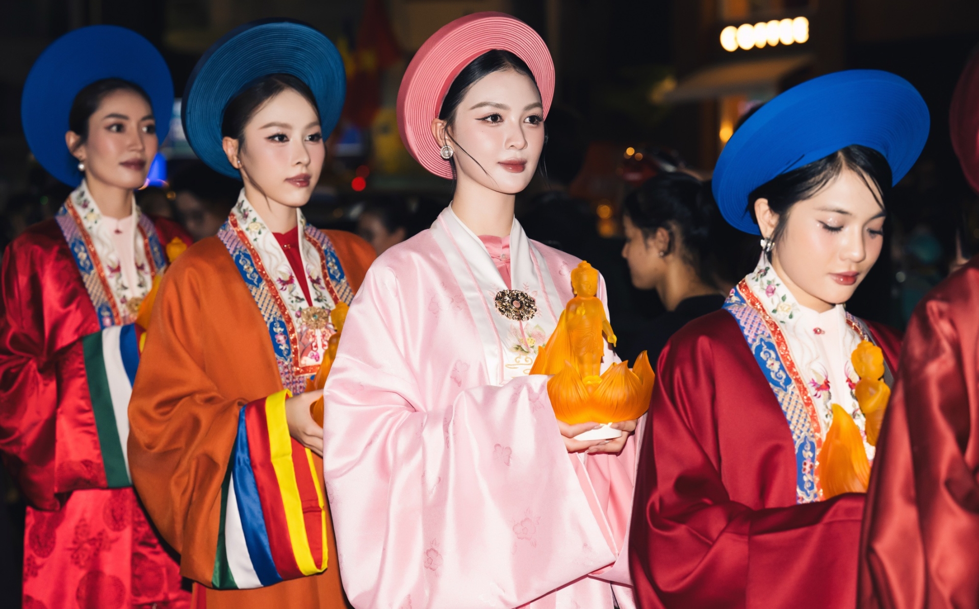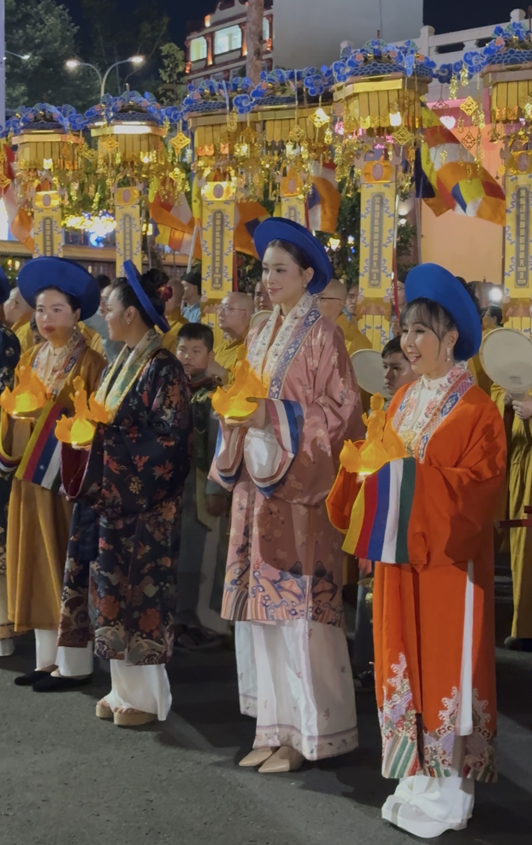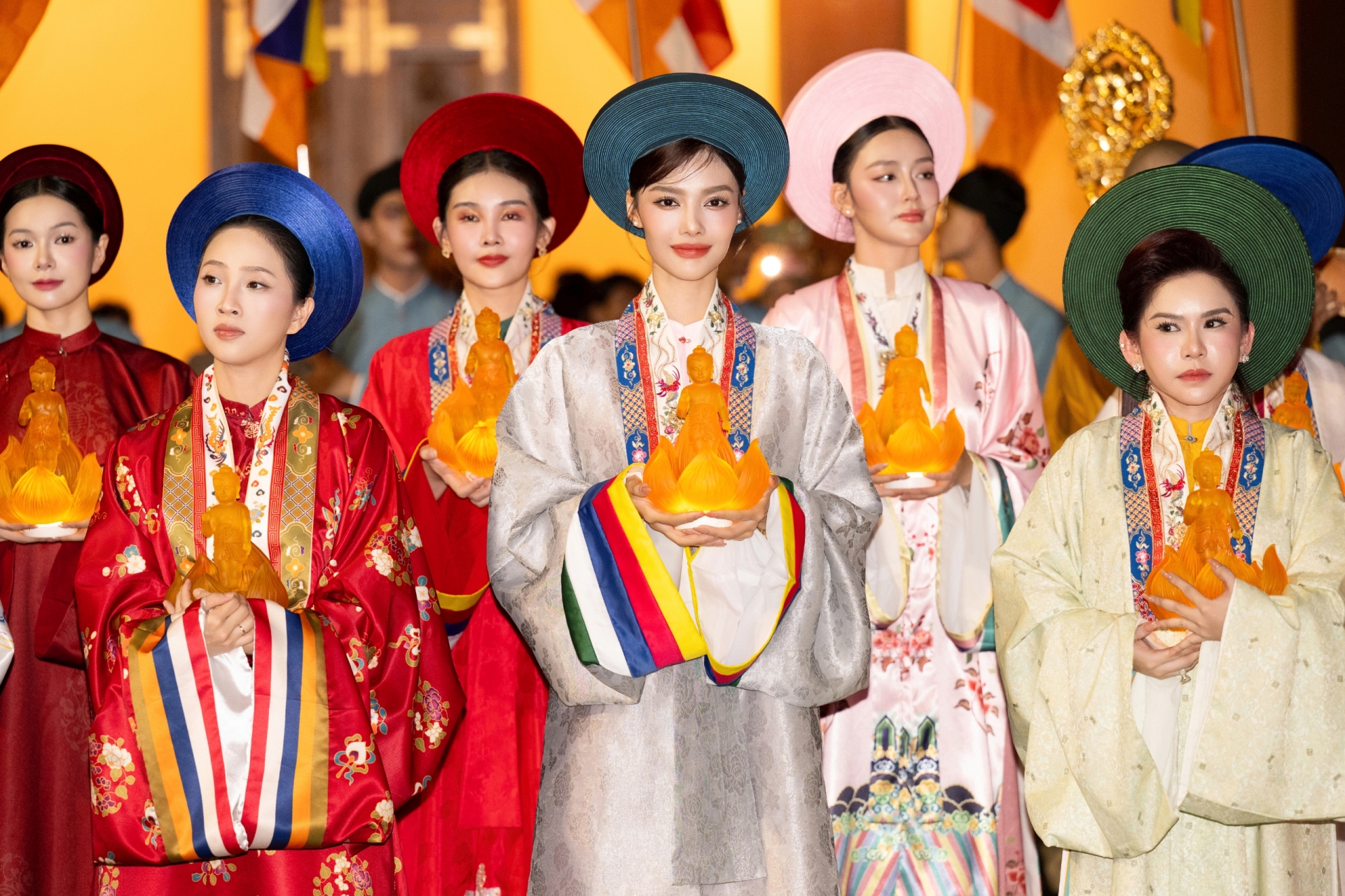 Dàn hoa hậu dự lễ rước tượng Đức Phật mừng Đại lễ Phật Đản 2025