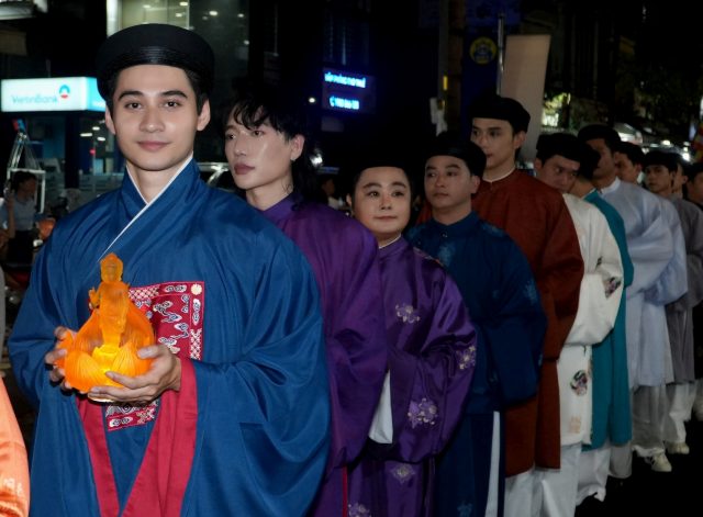 Tối 5/5, các hoa hậu, á hậu, nam vương góp mặt trong lễ rước kiệu và thỉnh tôn tượng Đức Phật đản sinh từ Tổ đình Ấn Quang về Việt Nam Quốc Tự, hòa cùng hàng nghìn phật tử đón mừng Đại lễ Phật Đản 2025.