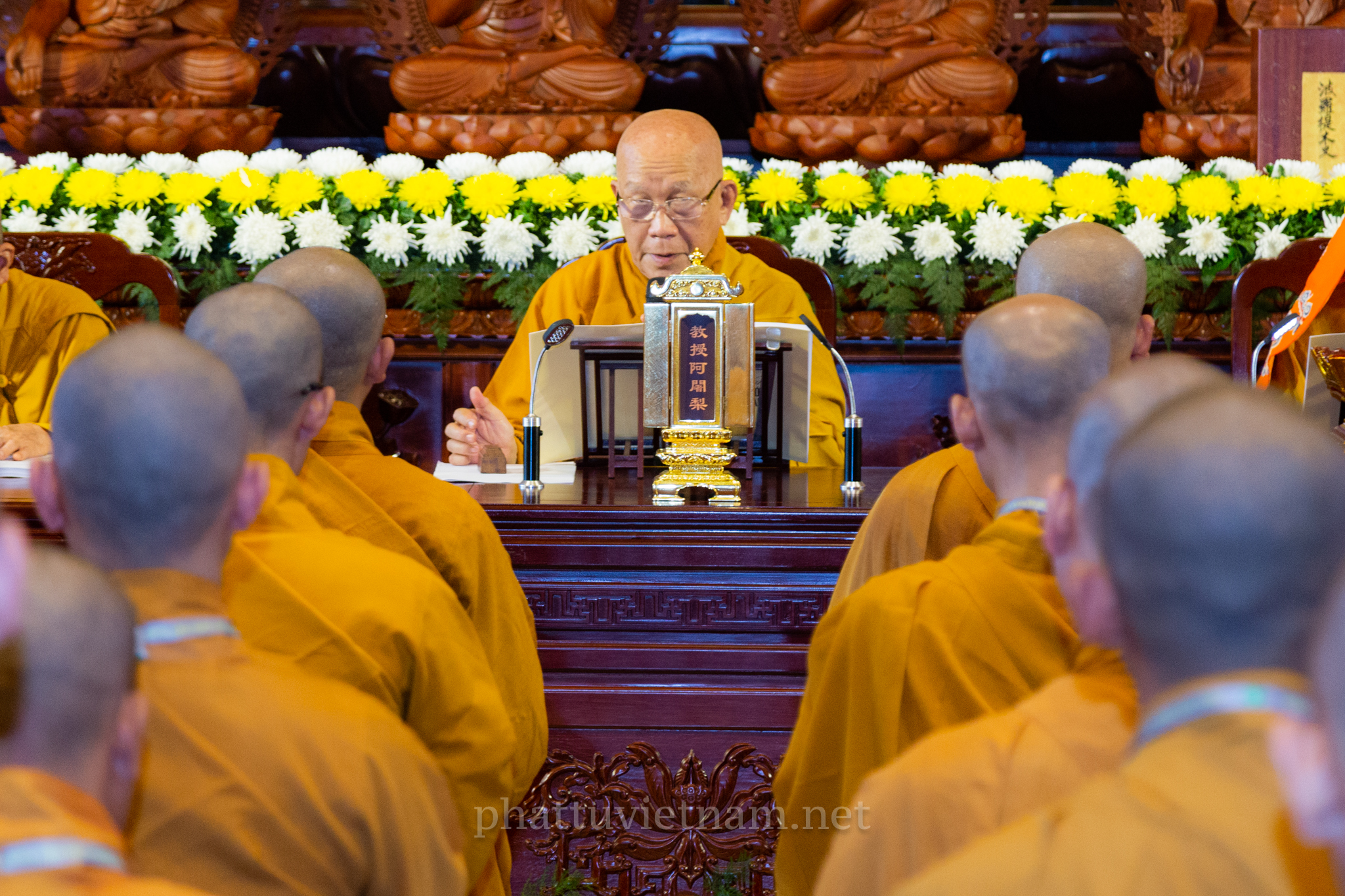 HT.Thích Minh Thông – Tuyên Luật sư Đại Giới đàn đã thay mặt Đại Tăng hướng dẫn các giới tử cung thỉnh Đức Bổn Sư Thích Ca Mâu Ni Phật là Hòa thượng Đàn đầu; cung thỉnh Bồ-tát Đại Trí Văn Thù làm Yết-ma A-xà-lê; cung thỉnh Bồ-tát Di Lặc là Giáo thọ A-xà-lê; cung thỉnh mười phương chư Phật làm tôn chứng sư và mười phương Bồ-tát làm bạn lữ cùng học giới sau khi vấn già nạn các giới tử.