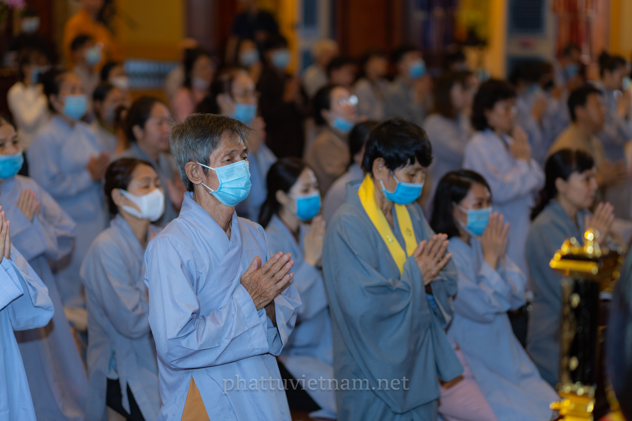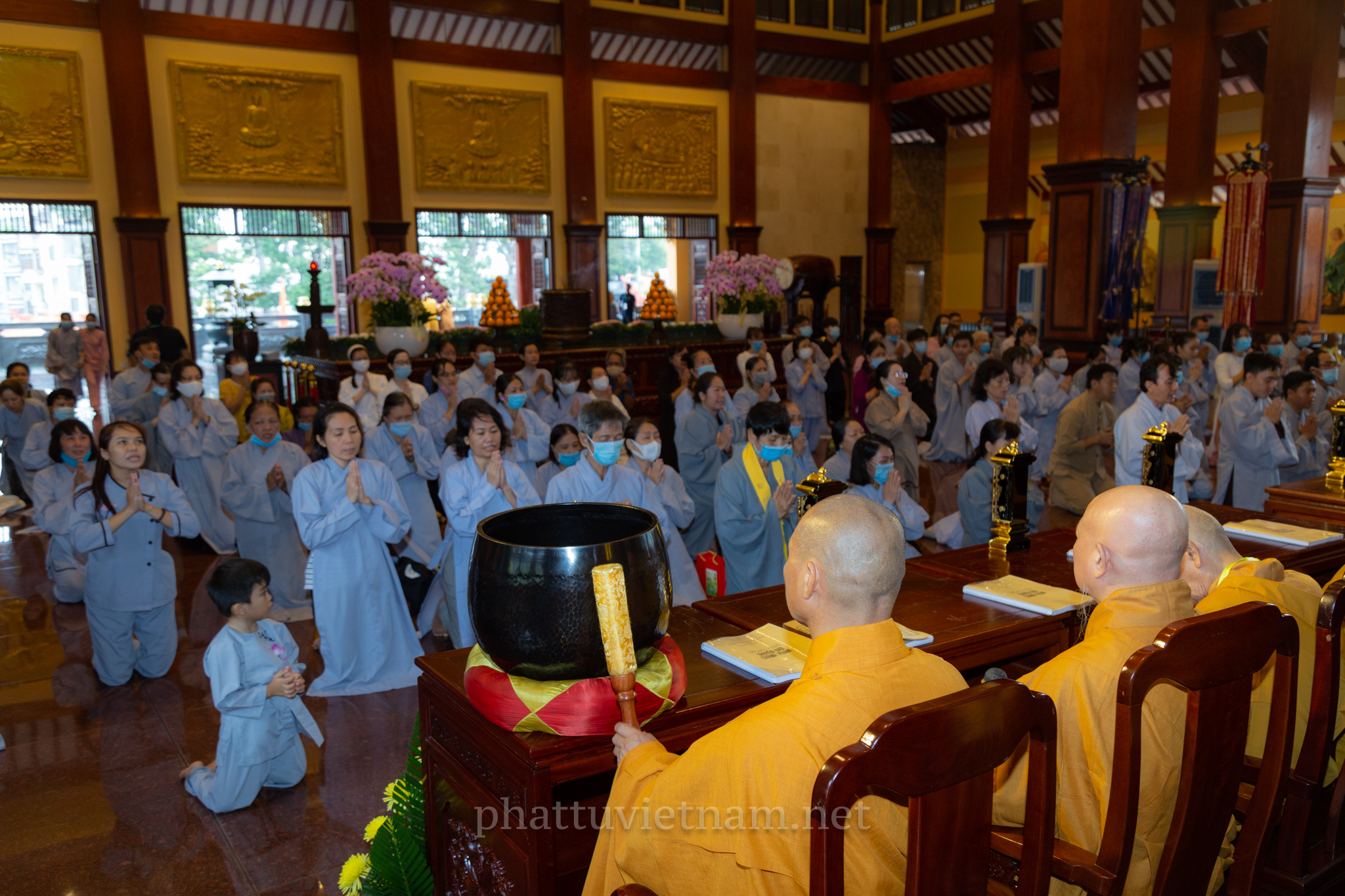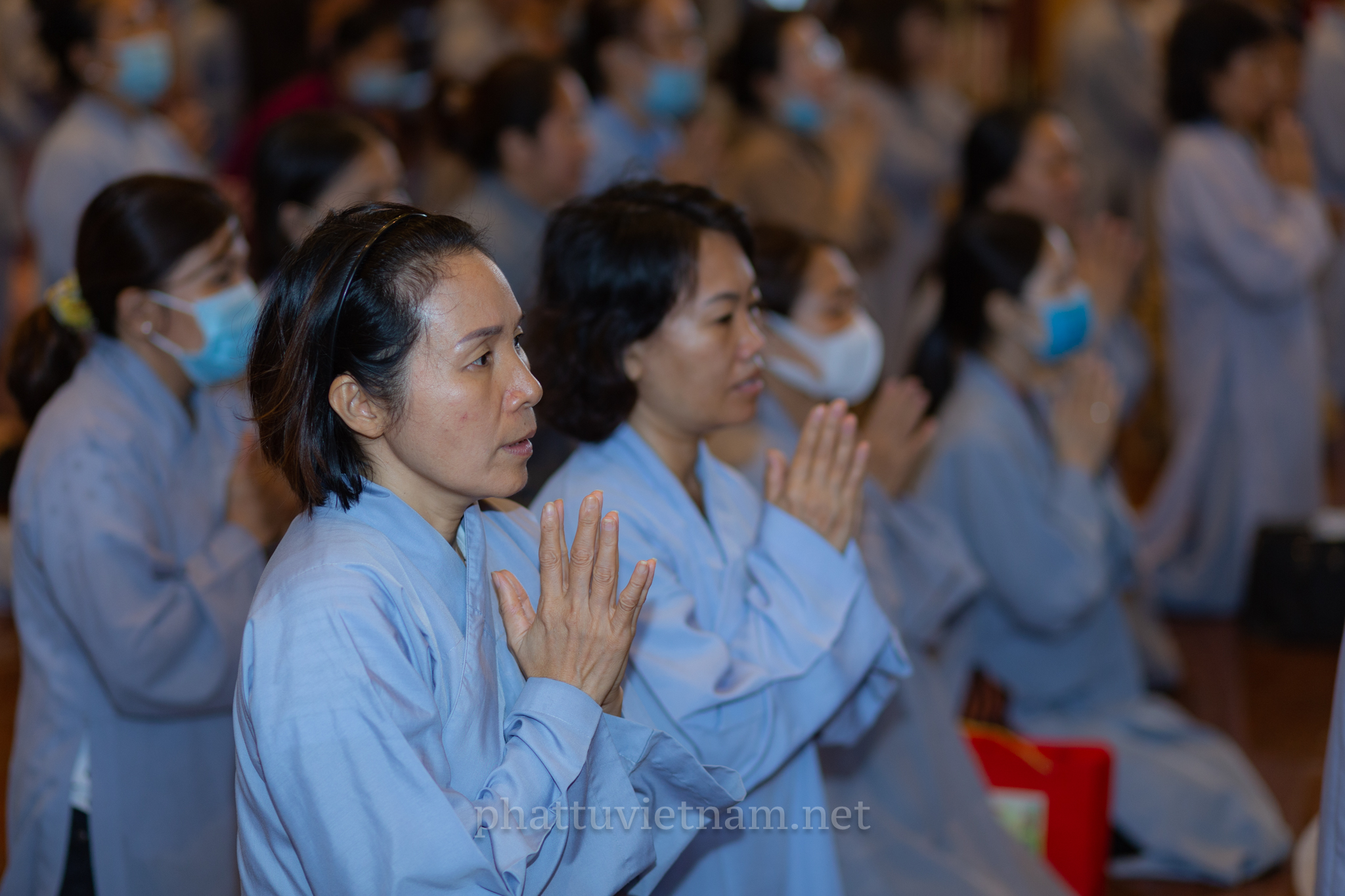 Lễ truyền giới diễn ra trong không khí trang nghiêm và thành kính của các giới tử. Ngay sau đó, chư Tôn đức Giới sư đã trao truyền Tam quy – Ngũ giới cho các Phật tử tại gia phát tâm thọ trì.