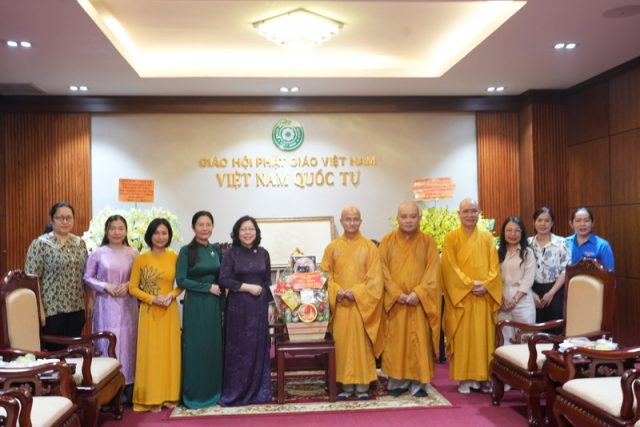 Tiếp đoàn có Thượng tọa Thích Thiện Quý – Phó Trưởng ban kiêm Chánh Thư ký Ban Trị sự GHPGVN TP.HCM và Thượng tọa Thích Trung Nguyện – Phó Chánh Thư ký kiêm Chánh Văn phòng Ban Trị sự GHPGVN TP.HCM cùng chư tôn đức Văn phòng BTS GHPGVN TPHCM.