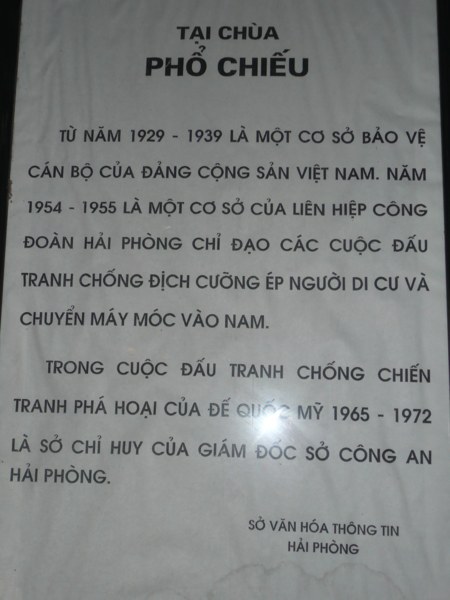 Ngoài ý nghĩa là nơi thờ Phật, nơi sinh hoạt tôn giáo của nhân dân, nơi đây còn là địa chỉ đỏ ghi nhiều dấu ấn lịch sử của thành phố Hải Phòng trong thời kỳ kháng chiến chống thực dân Pháp và chống chiến tranh phá hoại của đế quốc Mỹ.