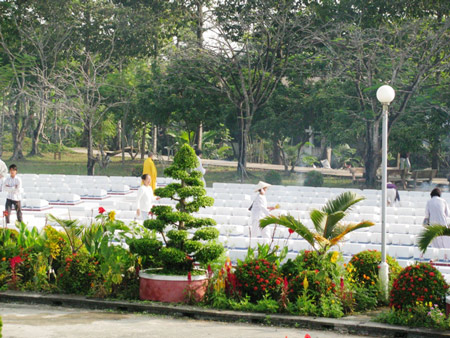 Nghi lễ vừa xong, mọi người tỏa ra đi thắp nhang hết các phần mộ. Nhìn những ngôi mộ được lát đá trắng tinh, khuôn viên sạch sẽ, khung cảnh thiên nhiên thanh bình, mới thấy nghĩa trang này đúng là nghĩa trang hạnh phúc. Ta không ngạc nhiên khi nhận thấy vào mùa cưới, không hẹn mà gặp, từng đôi, từng đôi… dìu nhau đến nghĩa trang để chụp ảnh cưới.
