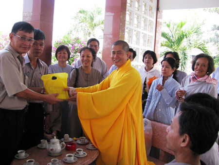 Nhân dịp này, đoàn chùa Dược Sư gửi tặng 22 phần quà cho cán bộ và công nhân viên trong Ban Quản Trang, mỗi phần trị giá 200.000 đồng.