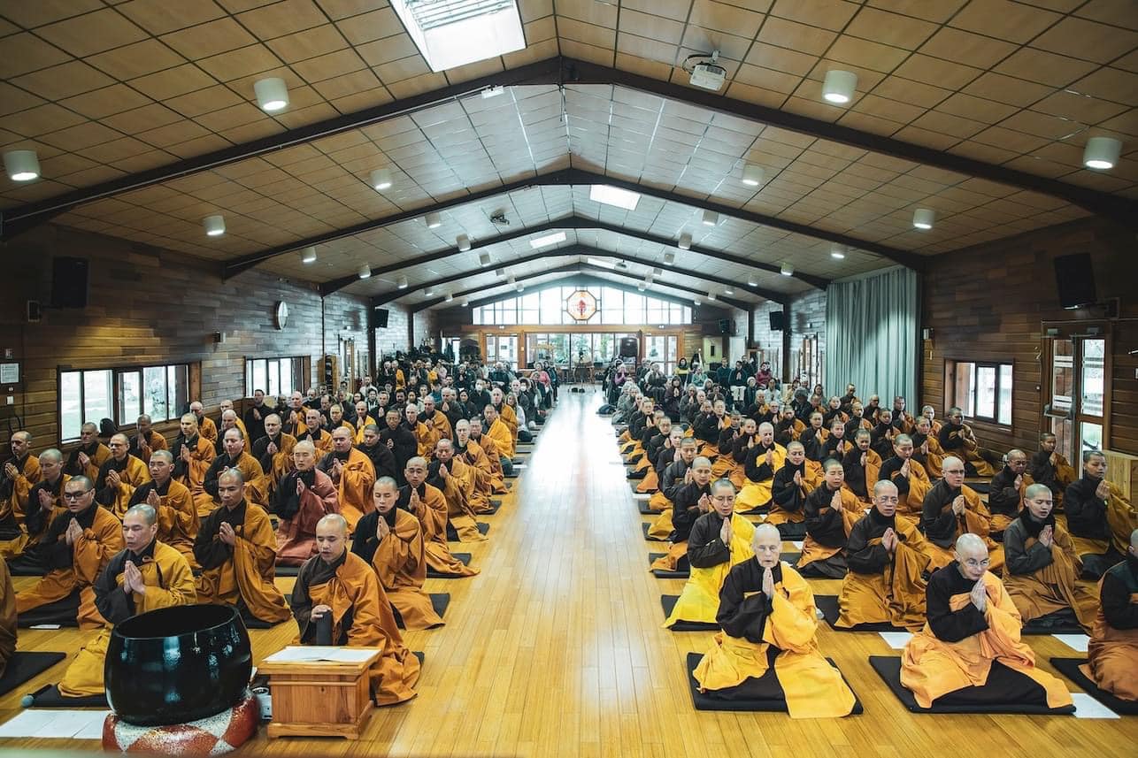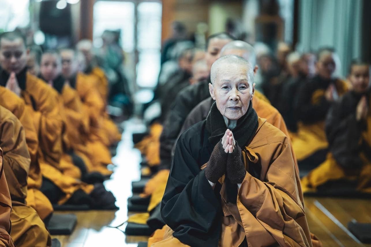Tuy rất đông các thầy, các sư cô từ các trung tâm Làng Mai khắp nơi trên thế giới trở về chùa Tổ, tham dự lễ Đại tường được tổ chức theo ngày âm lịch (ngày 19 tháng Chạp).