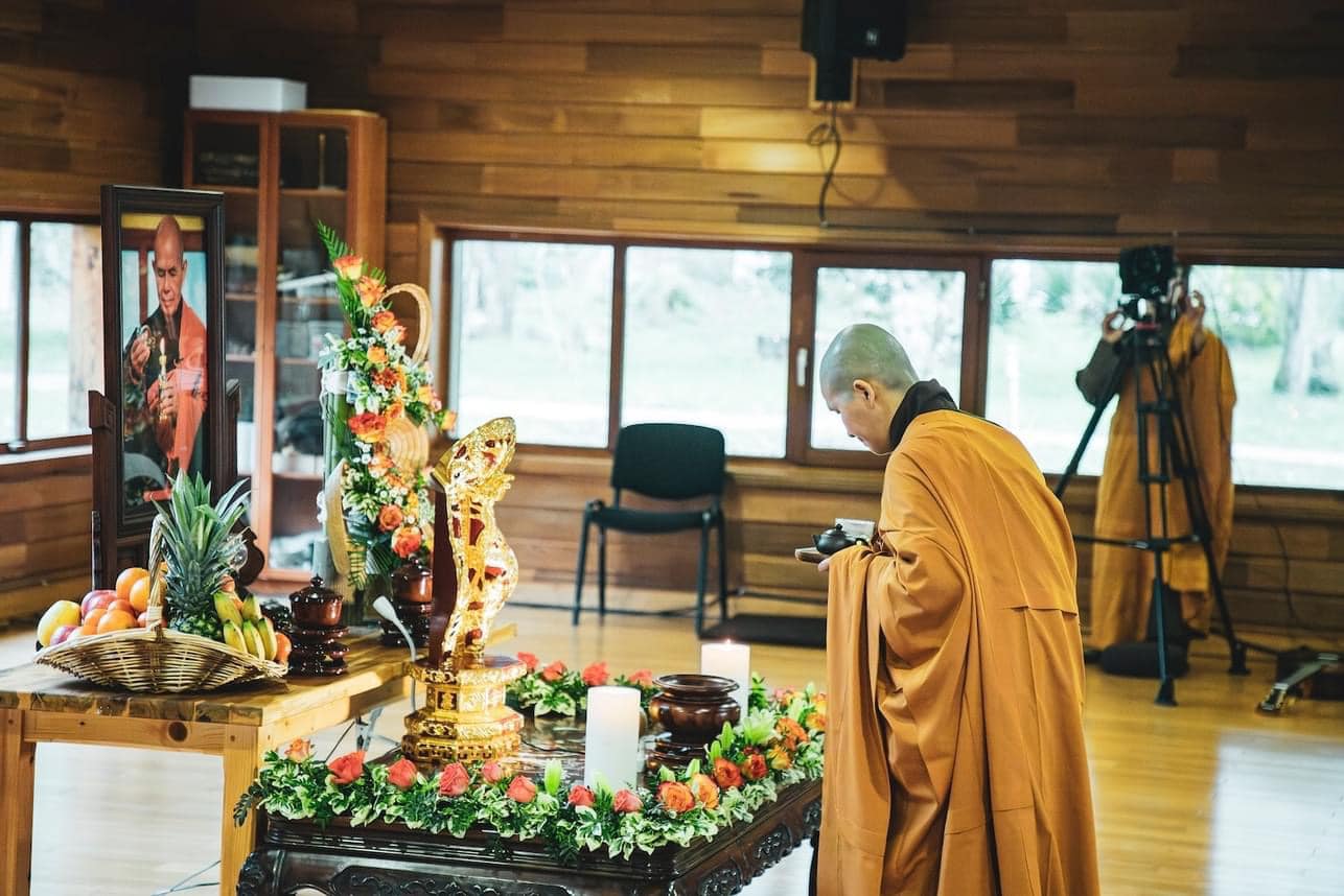 Thầy không còn đó trong hình hài quen thuộc, nhưng chúng con được an ủi khi ý thức rằng Thầy vẫn ở bên chúng con trong tiếng lá xạc xào, trong sự tĩnh lặng của thiền định, trong những nụ cười, những giây phút im lặng suy tư và trong cuộc sống của tăng thân – một kiệt tác của Thầy.
