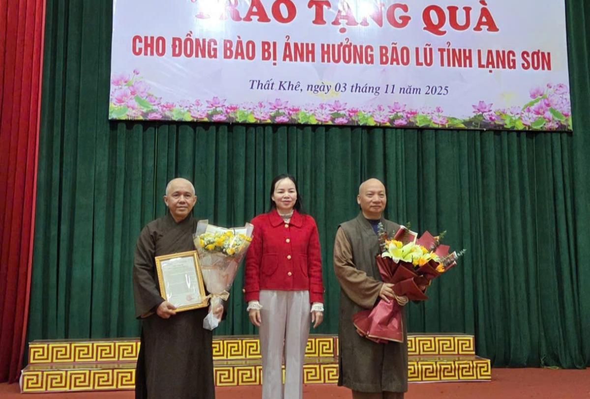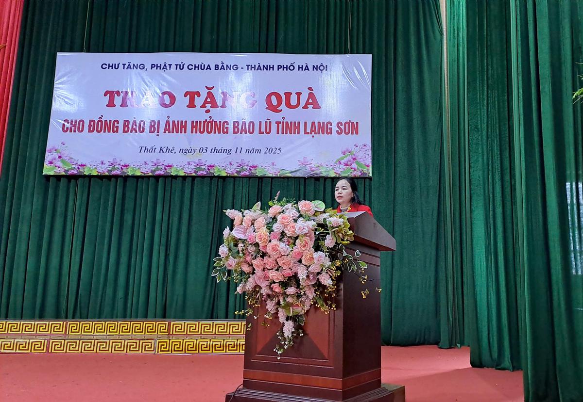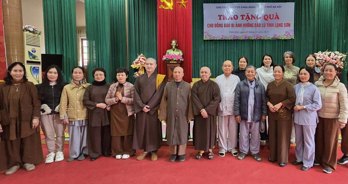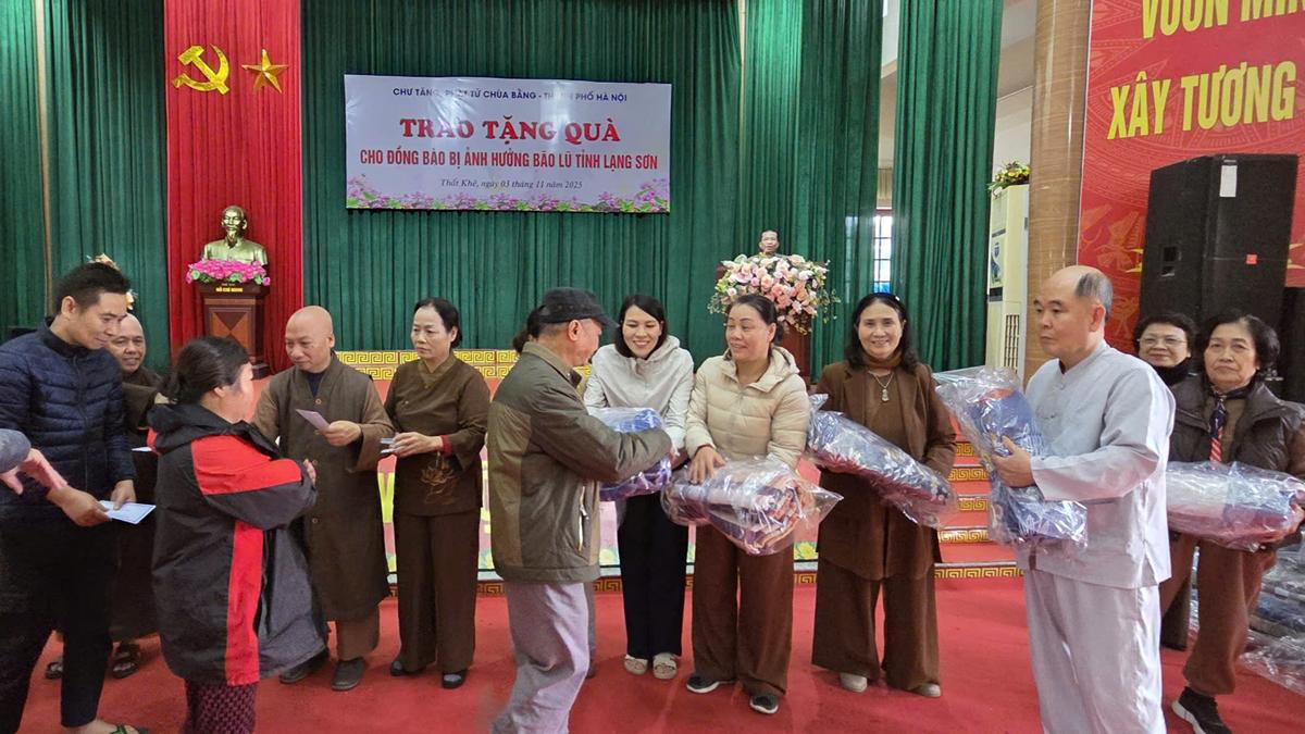 Vâng theo sự chỉ dạy của Hòa thượng Ân sư Thích Bảo Nghiêm – Phó chủ tịch HĐTS, Trưởng Ban Hoằng pháp TƯ GHPGVN, ngày 3/11, dưới sự hỗ trợ của BTS GHPGVN tỉnh Lạng Sơn, Thượng tọa Thích Chiếu Tuệ – Ủy viên HĐTS, Phó Trưởng Ban Thường trực Ban Hoằng pháp TW và Thượng tọa Thích Tâm Thuần – Phó Ban Hoằng pháp TW đã dẫn đoàn Phật tử Đạo tràng Pháp Hoa chùa Bằng tới trao tặng những phần quà ý nghĩa với tổng trị giá hơn 200 triệu đồng đến bà con vùng lũ xã Thất Khê nơi đây.