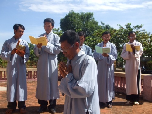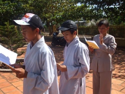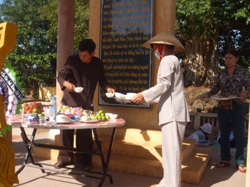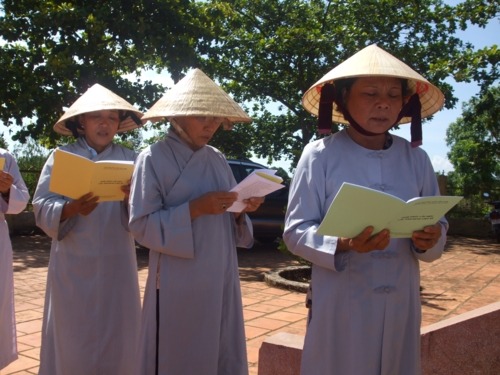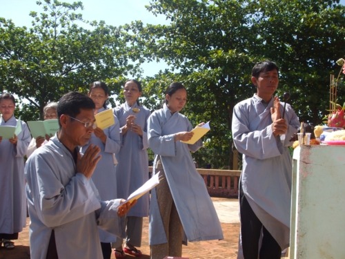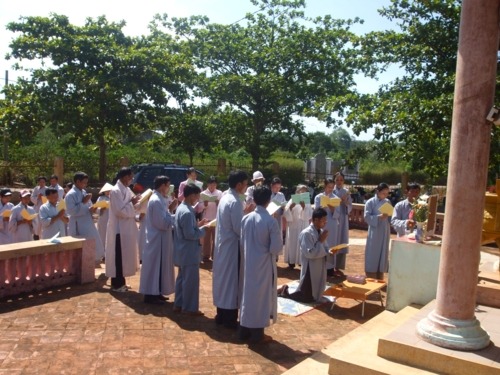 Đúng 9 giờ buổi lễ được tiến hành trong không khí xúc động và thiêng liêng. Đạo Tràng đã niệm hương bạch Phật và tụng sám cầu cho các anh hùng liệt sỹ với một lòng thiết tha cho các hương linh được an vui siêu thoát. Có những dòng lệ đã chảy khi đọc đến đoạn: “ Anh hùng lỡ bước sa cơ, Nói sao cho siết lúc vô tù đày, sự hành hạ không ngày nào thiếu , miếng cơm thiu chan máu mồ hôi, có khi chết bởi đòn roi, có khi chết bởi rả rời tấm thân .”