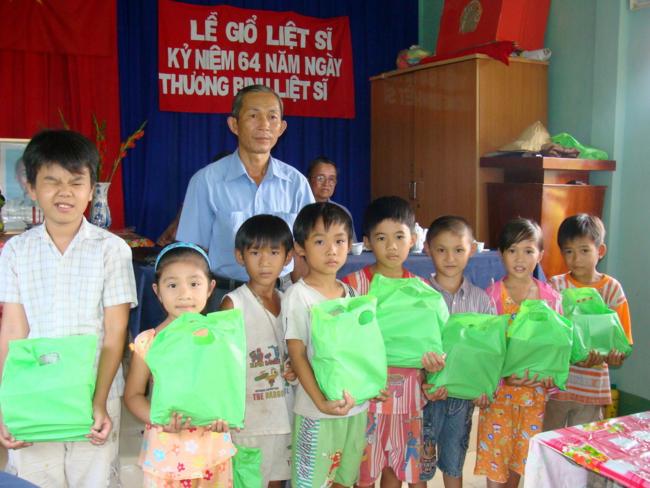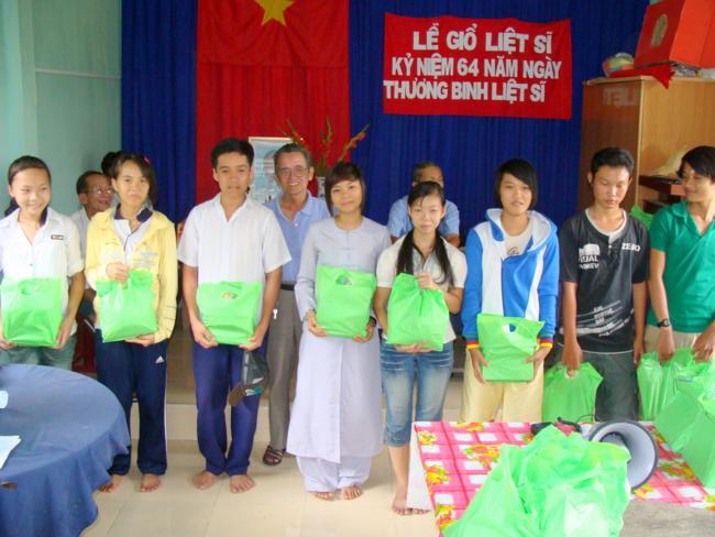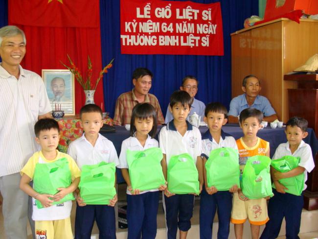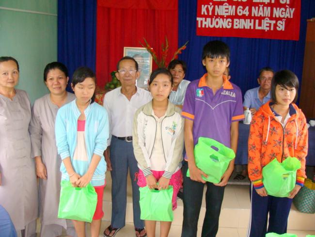 Buổi trao quà có sự tham dự của ông Lê Thanh Trang – Trưởng ấp Đồng; ông Nguyễn Văn Nhì – Chi Bộ ấp Đồng; ông cao Văn Thắm – Chi hội Phó CHCTĐ; ông Lê Quang Hiền – Chi hội Trưởng Hội Khuyến Học; ông Trương Văn Tranh – Chủ tịch Hội Khuyến Học xã Trung An; cùng thầy cô giáo trường Tiểu học xã Bình Đức, các phụ huynh học sinh và các thành viên đạo tràng Phật Hóa.